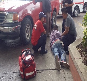 Personal de guardia de la presidencia municipal detuvo a la persona cuando este trataba de huir del lugar , mientras otras personas que estaban observando hablaban a los servicios de emergencia para que fuera atendida la persona lesionada.