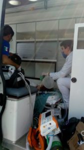 Personal del CRUM, con apoyo de bomberos y PoEs, recibió, en la explanada sur del estadio Corregidora, la ambulancia aérea para concluir el traslado vía terrestre al nosocomio.