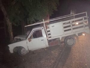 La noche del martes, se registró en el kilómetro 373 de la carretera federal Valles-Tamazunchale, cerca del restaurante Los Nopales, una camioneta marca Nissan color blanco, de modelo atrasado, se salió del camino y chocó contra un árbol.