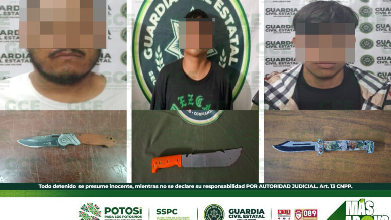 S.L.P.- Derivado de los reportes ciudadanos sobre casos de violencia familiar, agentes de la Guardia Civil Estatal (GCE) detuvieron a tres hombres a petición de las posibles víctimas, quienes indicaron que deseaban proceder legalmente en su contra.
