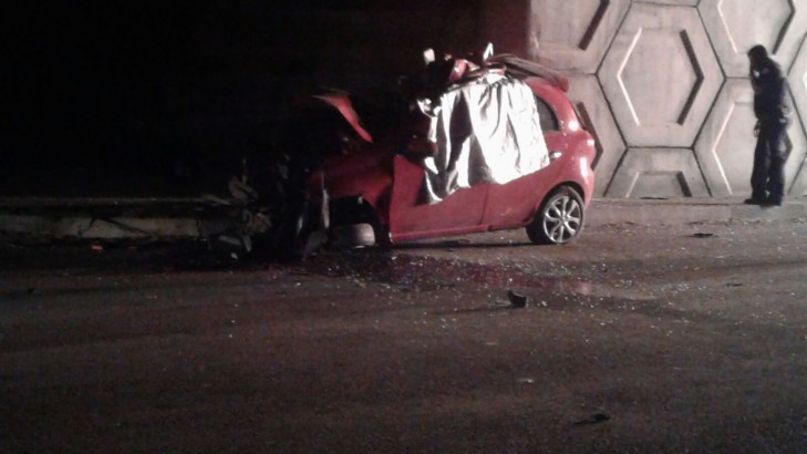Testigos presenciales dijeron que el conductor del Vehículo  March, color rojo, con placas de circulación UWC-77-D,  se impactaron contra la base del puente casi frente a la Termoeléctrica.