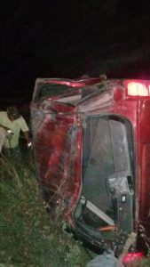 El accidente se suscitó casi frente a las instalaciones del rancho de engorda de la empresa empacadora cuando aparentemente una vaca se les atravesó a su paso lo que origino el descontrol de la unidad y comenzara a dar vueltas.