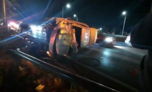 Tres personas lesionadas es el saldo de un choque y posterior volcadura en la carretera 57, próximo al puente Corona.
