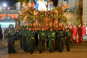 Entre el silencio y el sonido de los tambores, cada cofradía desfiló con sus colores alusivos a sus templos. Los costaleros cargaron las pesadas imágenes, mientras damas, nazarenos, encapuchados y cofrades se mostraron en actitud penitente.