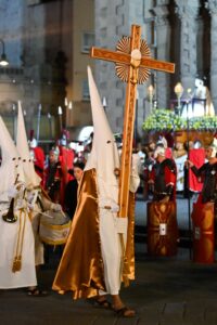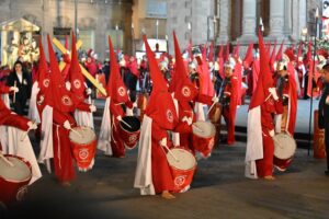 La Procesión del Silencio en San Luis Potosí, una tradición cultural y religiosa de renombre nacional e internacional, volvió a deslumbrar con su esplendor este Viernes Santo. Con la participación de 2 mil integrantes de diversas cofradías, la representación del viacrucis conmovió a miles de personas que se congregaron en el Centro Histórico desde antes de las 17:00 horas.