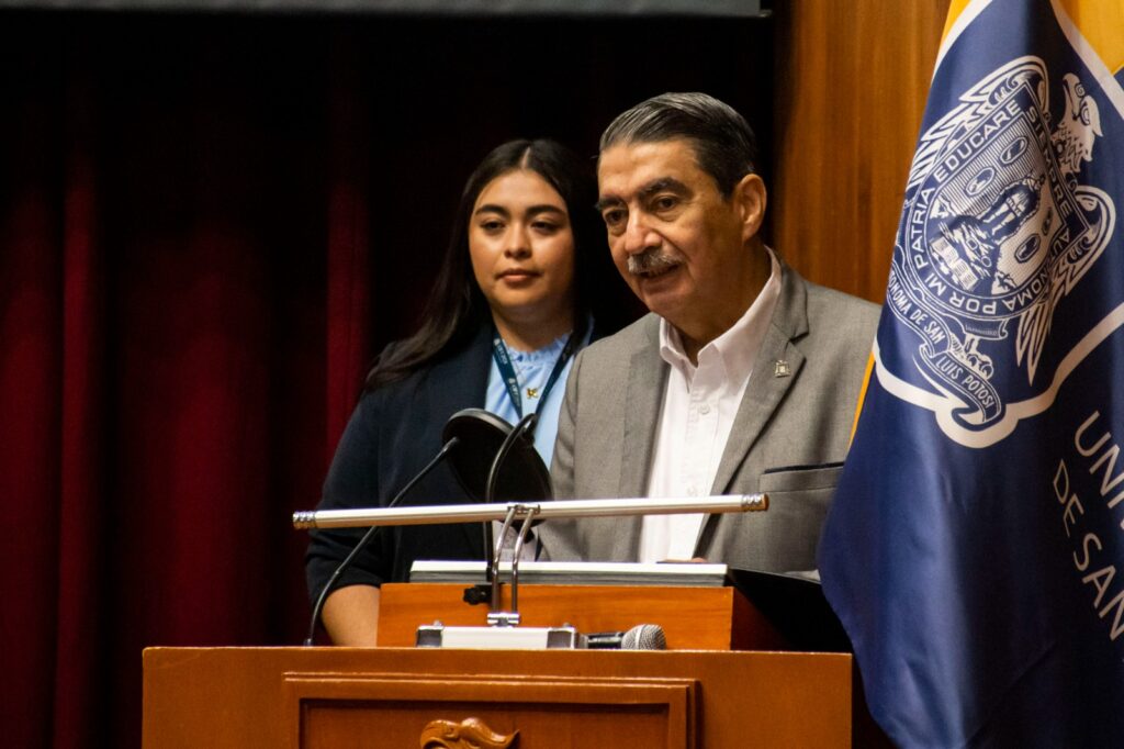 Recordó que la Licenciatura en Fisioterapia de la UASLP inició en 2021, cuando el mundo enfrentaba la pandemia de COVID-19, lo que representó grandes retos, especialmente por la necesidad de realizar prácticas presenciales, que son esenciales en la formación de los estudiantes de esta disciplina. Sin embargo, el programa logró avanzar y hoy, tres años después, se ha consolidado como la primera carrera en esa área médica ofrecida por una universidad pública en San Luis Potosí.
