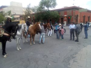 Elementos policiales están en la zona realizando los cortes a la circulación evitando con ello que se cause un caos mayor en el primer cuadro de la ciudad .