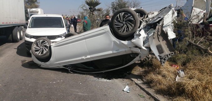 Un choque y volcadura se registró este martes en el Anillo Periférico a la altura de la colonia Cactus.