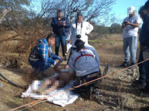 Elementos de la Policía Municipal, Estatal y Servicios Periciales dieron fe del cuerpo que fue localizado muerto en un pozo de agua agrícola donde se recibió el reporte de un cuerpo que flotaba dentro de un pozo en la cabecera municipal de Ahualulco.