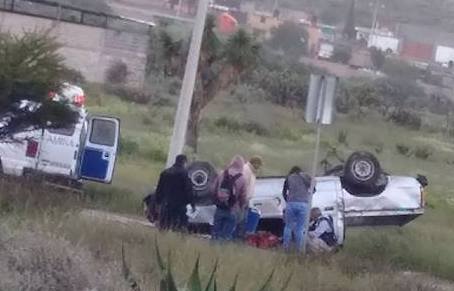 El conductor de una camioneta Nissan Pick Up doble cabina, perdió el control en Carretera a Villa de Zaragoza, resultando en una aparatosa volcadura que ocasionó severos daños en la unidad y una persona con lesiones de consideración.