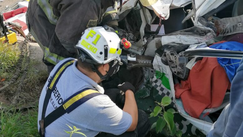 El impacto fue brutal que el conductor del taxi de nombre Reynaldo N no pudo esquivar la camioneta falleciendo en el lugar por el golpe y quedar prensado entre los fierros retorcidos de la unidad.