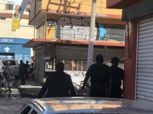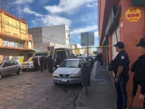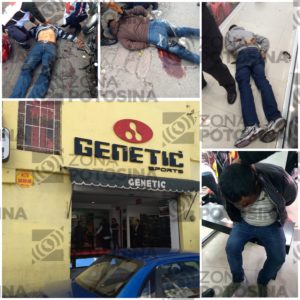 Un policía municipal resultó lesionado tras repelar un asalto en la Calle Guajardo, Local de tenis GENETIC, Zona Centro, en el lugar un asaltante murió y dos resultaron lesionados hay tres detenidos .
