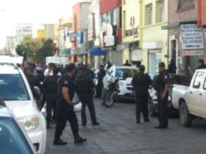 El asalto se registró en el centro de la ciudad a una tienda de venta de zapatos , empleados de la zapatería accionaron la alarma acudiendo el oficial Miguel Barbosa quien refiere que a su arribo a atender el reporte observo a varias personas en el interior de la tienda las cuales al verse sorprendidos le empezaron a disparar y este repelió la agresión, resultado por parte de los delincuentes dos lesionados y un occiso, .