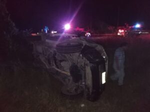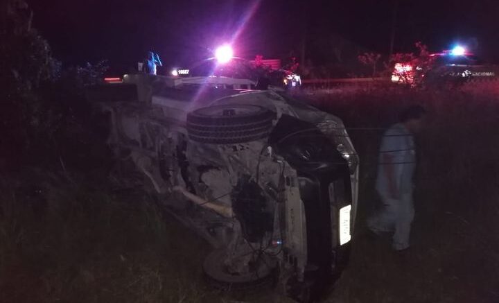 Socorristas de la Cruz Roja y oficiales de la Guardia Nacional División Carreteras, brindaron auxilio en un accidente que sucedió la noche de este domingo en el kilómetro 5 de la carretera federal Valles-Ríoverde.