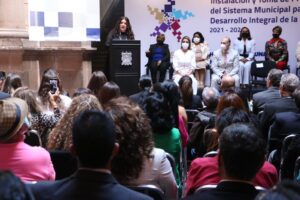 Por su parte, Ruth González Silva, quien tomará la protesta, calificó durante su intervención como satisfactoria la unión de esfuerzos a favor de las potosinas y potosinos con mayores necesidades, por lo que también se trabajará conjuntamente en la integración de un mapa estratégico para atender a la ciudadanía en rezago tanto en el Estado, así como en este Municipio “con acciones más cálidas y con mejores resultados”.