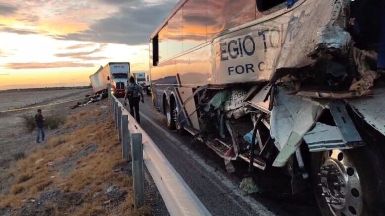 Fue alrededor de las 4:00 de la mañana a la altura del entronque al ejido El Sol el autobús de pasajeros de la compañía Regio Tour que viajaba de Escobedo, Nuevo León con destino a Mazatlán, Sinaloa intentó rebasar a exceso de velocidad sin embargo chocó por alcance al tráiler.