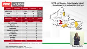 “Sesenta y un casos son de la capital, 7 casos en Soledad de Graciano Sánchez, 7 de Santa María del Río, 4 casos en Matehuala, uno en Ciudad Fernández, uno de Aquismón, uno de Ciudad Valles, uno de Tierra Nueva, uno de Coxcatlán y uno de Matlapa que se incorpora este día.