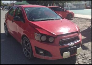 Por tales acciones, fue detenido, asegurándole también un vehículo marca Chevrolet, tipo Sonic, color rojo, modelo 2016, sin placas, en el que se desplazaba.