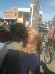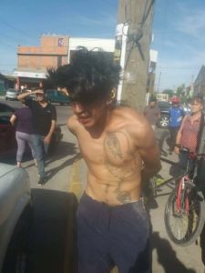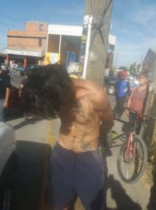 La gente enardecida lo amarraron en un poste, mientras lo golpeaban y le gritaban amenazas y palabras altisonantes, algunos vecinos enardecidos, querían tomar medidas extremas, y querían aplicar la del “bronco “amputarle alguna extremidad al delincuente, como castigo ejemplar, sinembargo no pudieron hacerlo por la presencia de la autoridad que llegó para impedir una barbaridad.