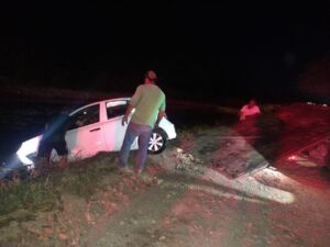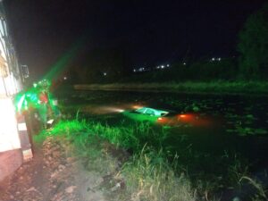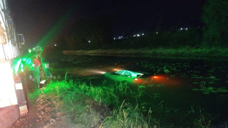 Elementos de la Dirección de Seguridad Pública Municipal, acudieron a brindar atención al reporte de salida de un vehículo que cayó a las aguas del canal principal del Manantial de la Media Luna.