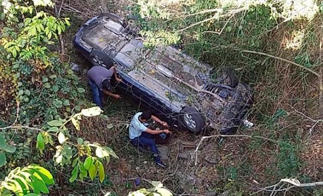 Por ese motivo su unidad se salió del camino y volcó hacia un desnivel, donde quedó con las llantas hacia arriba.