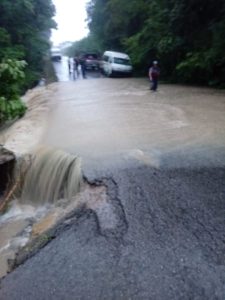 Hasta el momento continúa la lluvia, se estará al pendiente sobre el aumento de caudal del rio, así como los diferentes arroyos de esta cabecera municipal, de la comunidad de Santa Fe a la comunidad de Agua Puerca del municipio de Xilitla no hay paso.