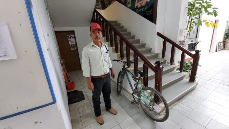 Velador que recuperó bicicleta por seguimiento de cámaras, acudió a la Presidencia de Rioverde, para agradecer apoyo del alcalde Arnulfo Urbiola