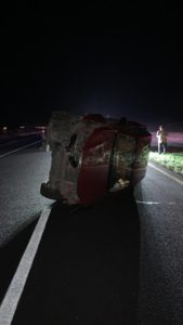 El vicepresidente de la CMIC en Rioverde Oscar Beltrán Rivera sufrió un accidente en la carretera 57 con dirección a San Luis Potosí la noche del miércoles provocado por una llanta de un tráiler en el carril de alta velocidad.