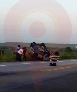 Tras ser impactados por el tráiler, el platina en el cual viajaba la familia salió del camino y terminó por volcar a un costado de la carretera.