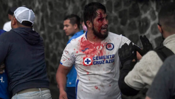 Un hombre fue golpeado y apareció lleno de sangre en fotografías y videos (Foto: PEDRO PARDO / AFP)A través de diversos videos que circulan por las redes sociales, se puede ver que aficionados de Cruz Azul tienen una pelea a golpes con personal de la Seguridad Privada del Estadio Azteca, donde se desarrolló el partido.