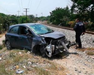 El conductor de un automóvil compacto se estrelló contra el tren la tarde del viernes en la colonia loma bonita de Ciudad Valles .