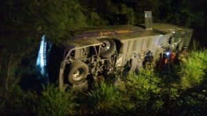 La madrugada de hoy martes un autobús de la linea Autonaves potosinas volcó en el libramiento poniente a la altura de la comunidad Tampaya con un saldo de seis personas lesionadas