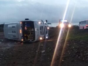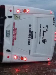 Cerca de las 6:30 de la mañana de este viernes, se suscitó un accidente sobre la carretera 37, tras la volcadura de un Camión de Transporte de Personal del Bajío de la Línea TEB.