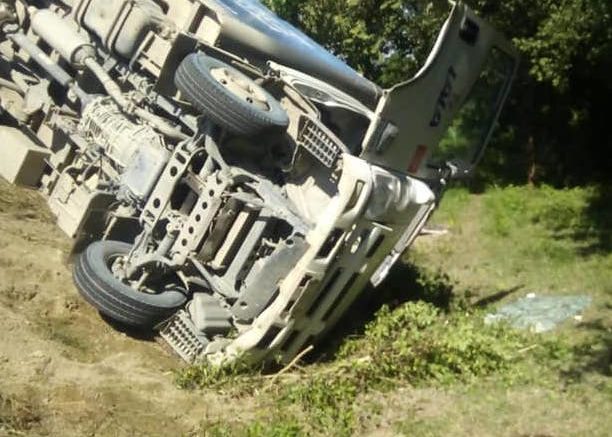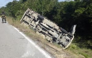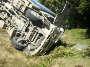 El camión de la empresa Lala, se salió del camino y volcó por su parte el chófer estuvo prensado por unos minutos, pero su compañero y voluntarios lograron sacarlo dentro de lo