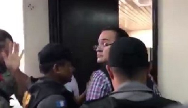 Ciudad de México.- Para la audiencia de hoy Javier Duarte recibió más que audiencia con el juez y es que el ex gobernador de Veracruz recibió un “zape” mientras ingresaba a la sala.